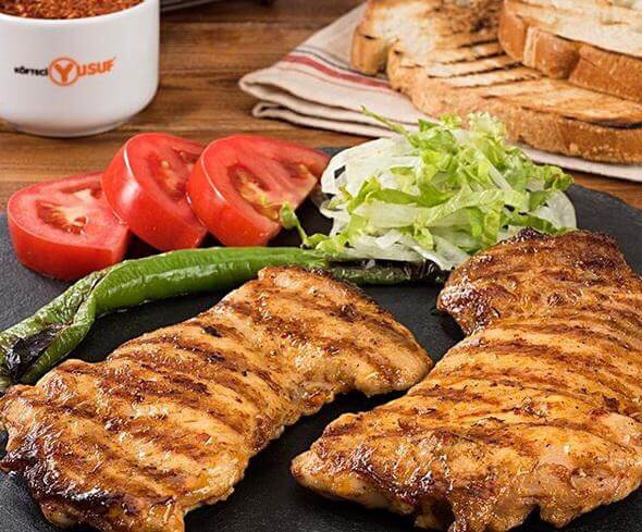 Közlenmiş domates, soğan ve lavaş ile (Belirtilen gramaj bilgisi ürünlerin çiğ halinin gramajıdır.)